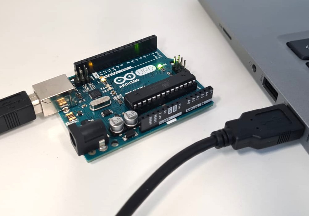 Wanneer je de Arduino via een USB-kabel met je computer verbindt, ontvangt hij 5V voeding vanuit de computer.